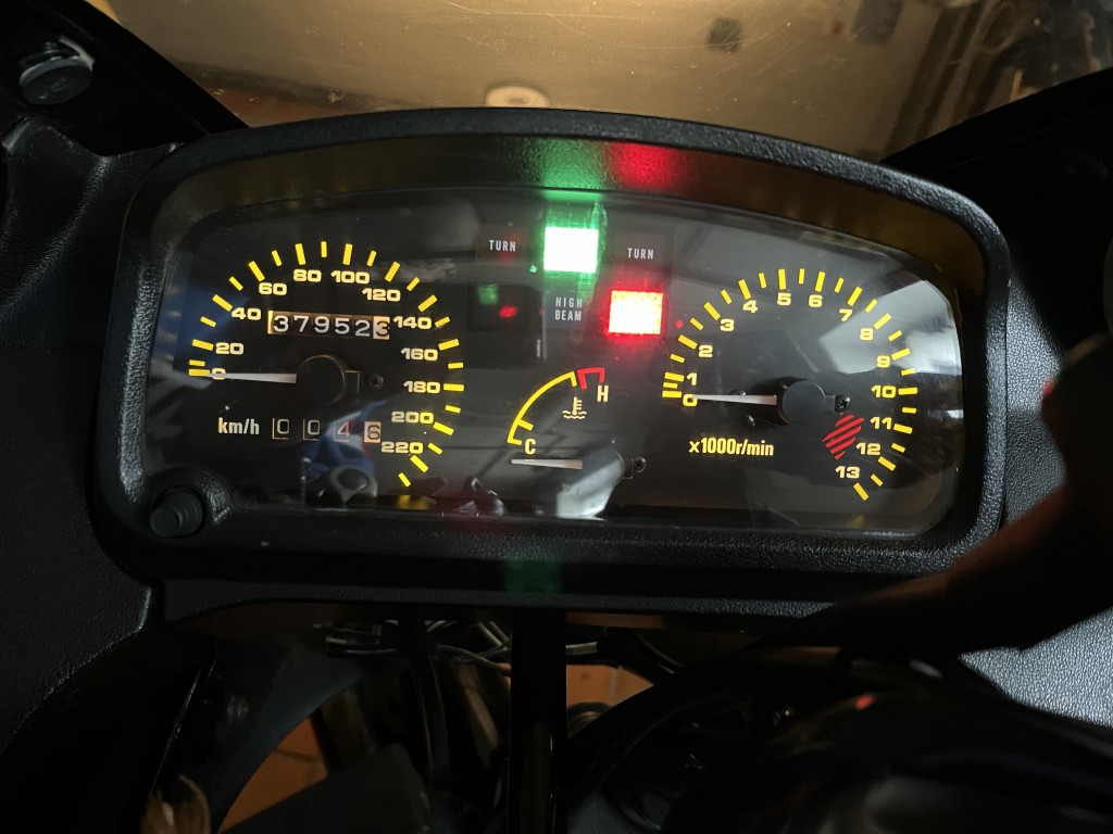 Nachdem letztes Jahr der Drehzahlmesser schon komplett dunkel war, gabs im März neues Leuchtobst für den Tacho: