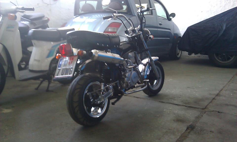 Bevors noch das erste mal auf die Straße ging wurden Auspuff, Reifen, Spiegel und Fussrasten ersetzt.