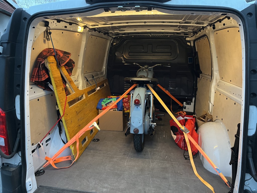 In den folgenden Wochen gabs regelmäßige Updates über den Fortschritt, und Ende März wars dann soweit. Einen Vito ausgeborgt, am Weg das Museum in Speyer mitgenommen, und fest verzurrt nach Hause gefahren.