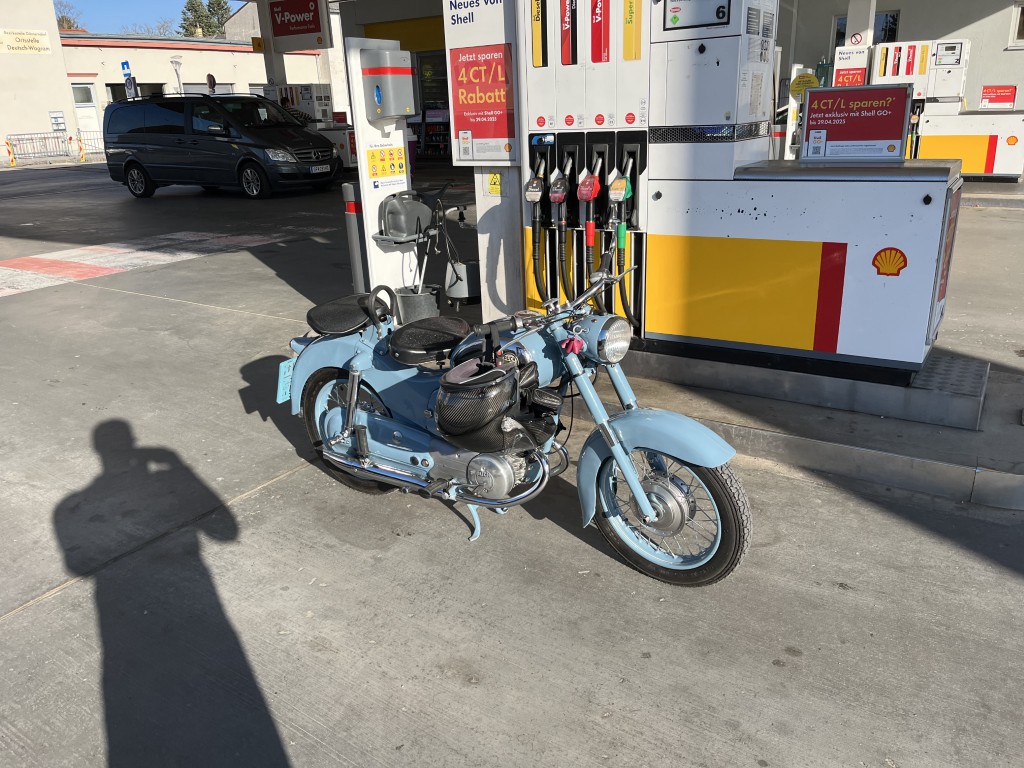 Beim Kaltstart muss ich noch lernen was sie genau will, aber sobald der Vergaser mal genug Sprit liefert, kommt sie brav auf den ersten Kick und tuckert im Leerlauf sauber vor sich hin.